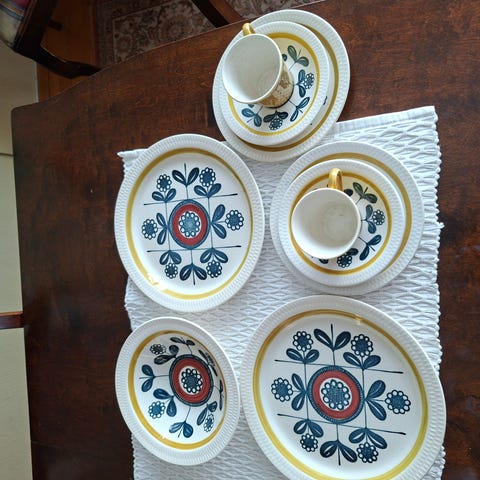 En skål er litt krakelert. Alt det andre er som nytt.