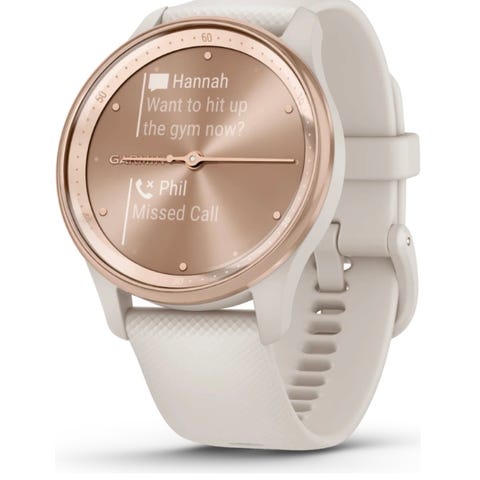 Garminklokke med rundt urkasse og hvit silikonreim. Klokken har sensor på baksiden av urkassen for måling av aktivitet og/eller puls. Reimen har flere justeringshull og tradisjonell spenne, som også kan byttes. Nøytralt design som kan brukes til hverdags og trening. Den er pent brukt og alt funker som den skal. Lader som plugges i bak. Lader fort og holder i flere dager!