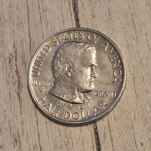 USA Kennedy Half Dollar 2025 mynt i sølvfarget metall. Forsiden viser portrett med teksten «LIBERTY», «IN GOD WE TRUST» og årstall 2025. Baksiden har ørnemotiv med skjold, olivengren og piler, omgitt av teksten «UNITED STATES OF AMERICA» og «HALF DOLLAR». Egner seg som samlerobjekt eller til numismatisk bruk.