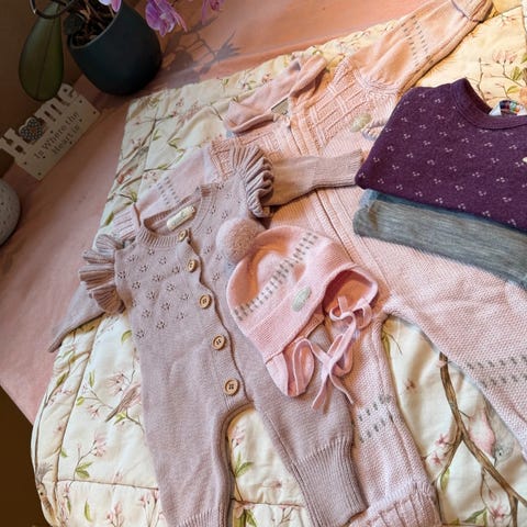 Klespakke - ull: 3 måneder (Lillelam, Reflex, Hust & Claire) + formula dispenser + vinterdress (Uniqlo)