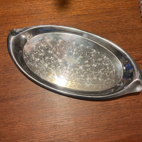 Ukjent merke dekorativt metallfat rektangulært sølvfarget