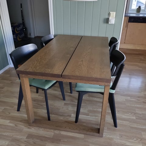Legger ved to bilder lånt fra nettet for hvordan bord og stol ser ut uten maling.