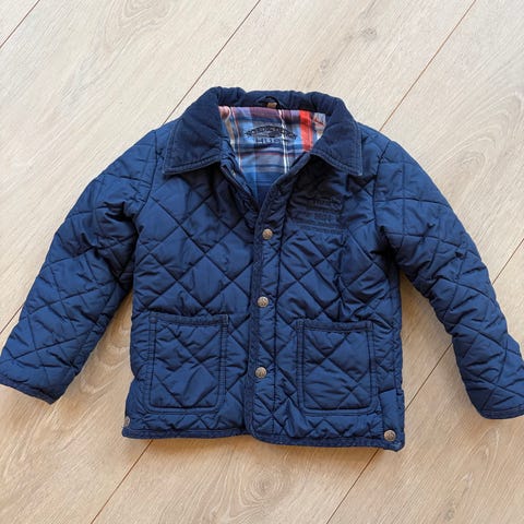 Veldig fin vår/høst-jakke i morsomt snitt og mønster. Fikk i gave, men ble fort liten, så fremstår ny og ubrukt.