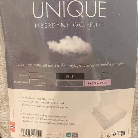 Dundyne 100x160, pent brukt. Dynetrekk og putetrekk følger med.