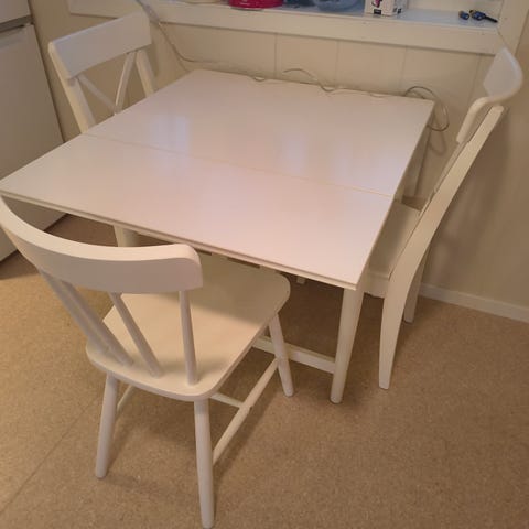 Pent lite spisebord og 2 stoler.
