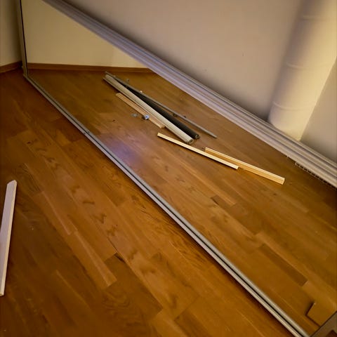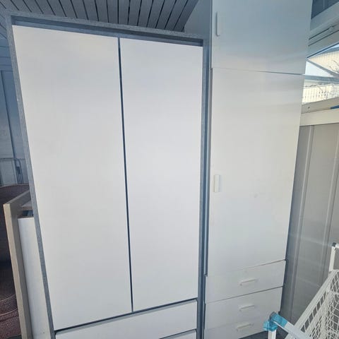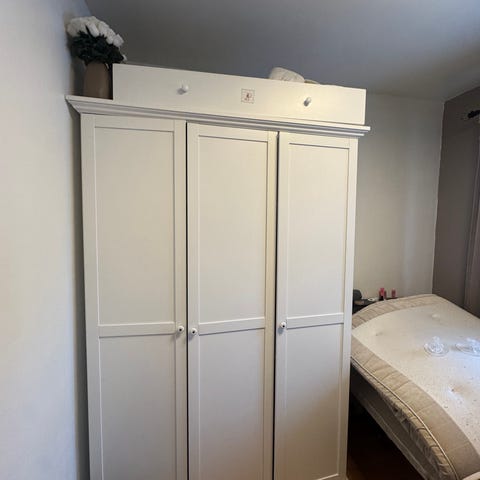 Pent brukt garderobeskap av modell Evetofte fra Jysk selges billig mot at kjøper demonterer skapet.