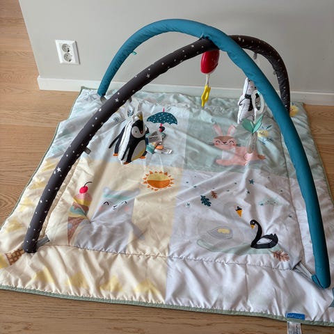 Tiny Love babygym med myk lekematte og to buer med oppheng. Modellen heter «Polar Wonders». Inkluderer flere avtagbare myke leker i dyrefigurer som kan festes på buene eller brukes separat. Babygymmen har polstret kant rundt liggeflaten og er egnet fra nyfødt. Flerfargede tekstiler med ulike mønstre og strukturer gir visuell og taktil stimulering for babyen.