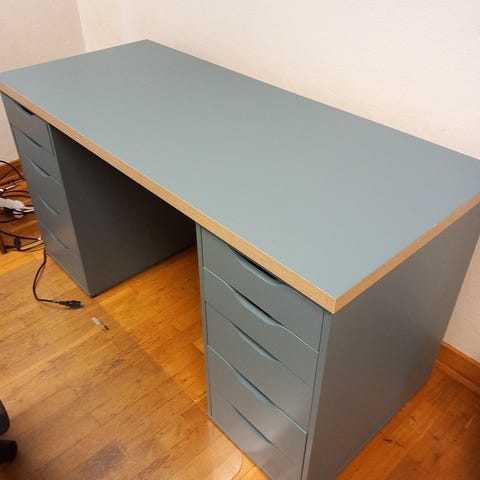 Koselig blåmalt, eldre skrivebord gis bort