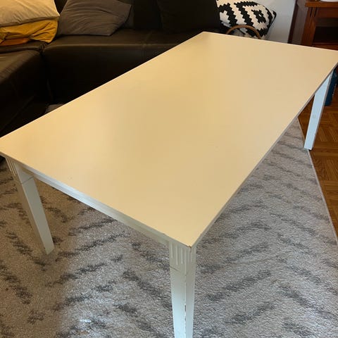 Det er bruksmerker på skrivebordet.