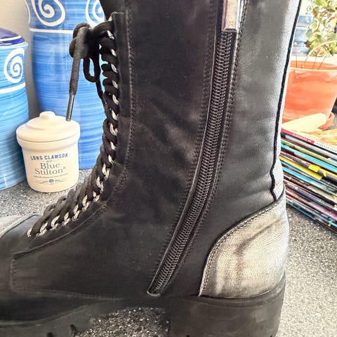 Completely new boots from “Steel”. Put them on once and realised should have gotten one size smaller😬. Real leather
