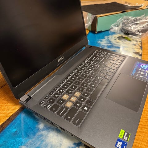 MSI bærbar PC med 15,6-tommers skjerm i svart utførelse. Modellen har fullstørrelse tastatur med numerisk del og stor styreflate. Skjermen har tynn ramme rundt for bedre utnyttelse av flaten. Egner seg til generell bruk som kontorarbeid, studier og mediebruk. Maskinen har flere tilkoblingsmuligheter på sidene for tilbehør og eksterne enheter. Fikk som gave noen uker tilbake. Helt ny, uåpnet. Før pris 8500kr