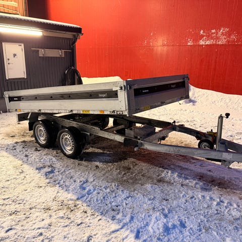 Lite brukt Tysse tilhenger med helt nye sommerdekk. 150x250x35 cm med ekstra karmsett 35 cm