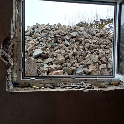 Mursteinen er løsnet og ligger på gulvet.