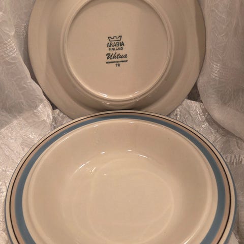 Søkeord: Arabia, Arabia Finland, Uhtua, kaffekopp, 80-tall, vintage servise, blå stripe, finsk design, retro kjøkken