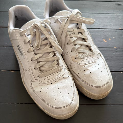 Puma sneakers joggesko i størrelse 46. Modellen er lave joggesko i hvit farge med snøring. Overdelen er i syntetisk materiale med perforert tåparti for ventilasjon, og sålen er i gummi. Passer til hverdagsbruk og lett fritidsaktivitet.