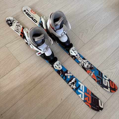 Pent brukte alpinski til barn/junior. Lengde 107.