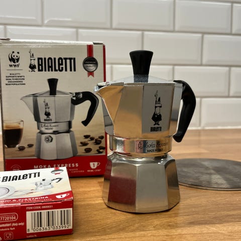 To bilaetti kanner og en uåpnet pakke med filter og pakninger som passer til 3/4-kopp kannen.