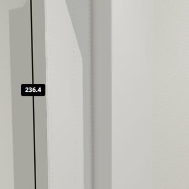 Stammen er hvit, døren i lys eik. Det er montert ben på bunnen, men disse kan fjernes.