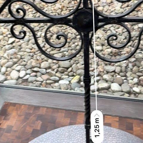 English: Robust hand-forged wrought iron candle holder. 28 cm long. Holds three candles. Beautiful vintage patina. A perfect rustic centerpiece for your home or mountain cabin. Great condition
