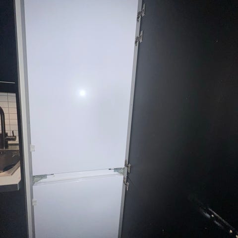 Innebygd Siemens 2017 mod, kombiskap med kjøleskap øverst og fryser nederst. Kjøledelen har flere justerbare glasshyller, dørhyller og grønnsaksskuff. Frysedelen har tre skuffer for oppbevaring av frossenmat. Høyde ca 175 cm