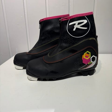 Brukt kun et par ganger, ser ut som nye 😊 Rossignol Snowflake rosa og svart skisko for barn str 30. Foret, så de er gode og varme