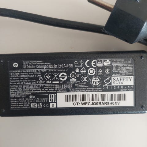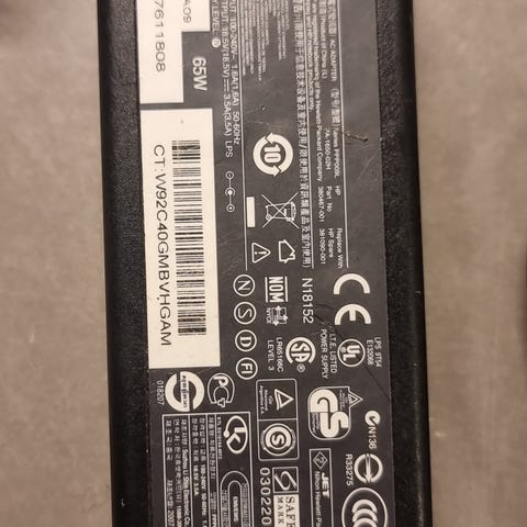 HP nettadapter 135W i svart. Strømforsyning til bærbar PC med rund DC-plugg, egnet for utvalgte HP‑modeller som bruker denne typen kontakt og effekt. Adapteren har innebygde sikkerhets- og sertifiseringsmerker som angitt på etiketten. Passer som erstatningslader eller ekstra strømforsyning der kompatibilitet med 135W HP‑adapter kreves. Kontroller modellnummer og spesifikasjoner på egen PC før bruk.