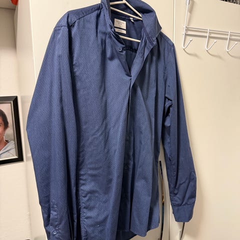 Dressmann skjorte for herre i størrelse M. Skjorten er svart og laget av bomull. Klassisk modell med krage og lange ermer, egnet til både hverdagsbruk og mer formelle anledninger. Passer til bruk med bukse eller dress, og kan brukes med eller uten slips. Skjorta har stretch.