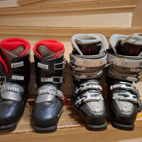 Telemarksko: Svarte med røde spenner, str 41(265) litt små, så ca sko str 39-39.5, 950,-kr.