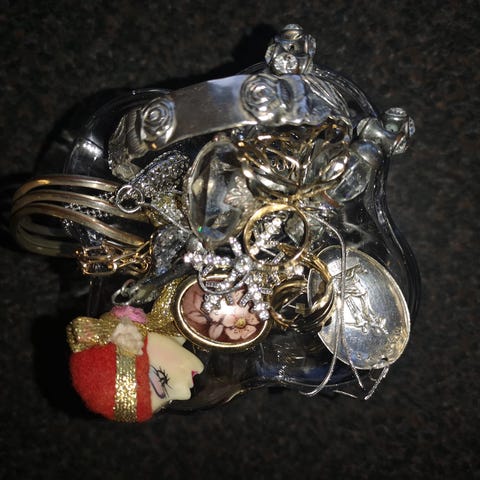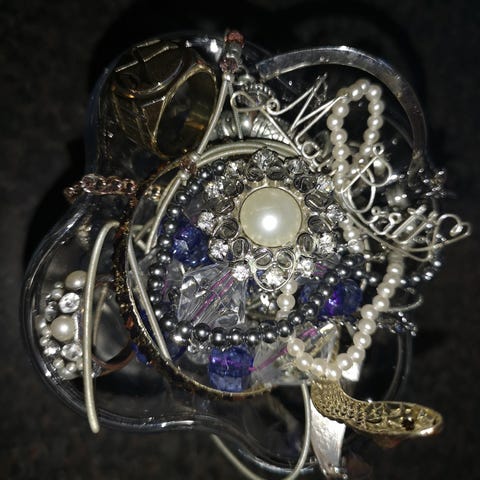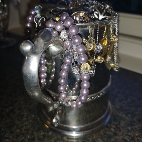 Mange flotte smykker i dette glasset som gir deg mye for pengene.