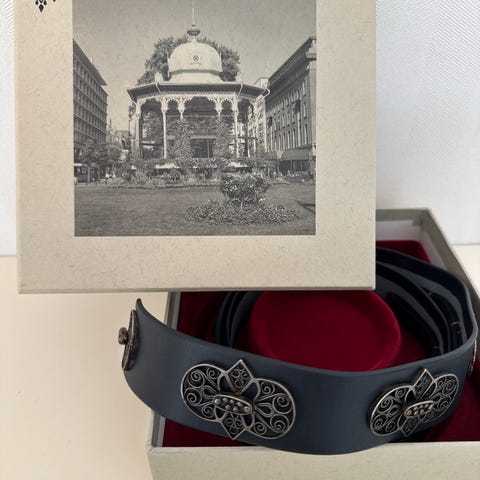 Vakkert bunadsbelte brodert med små perler. Beltet er helt nytt og ubrukt.