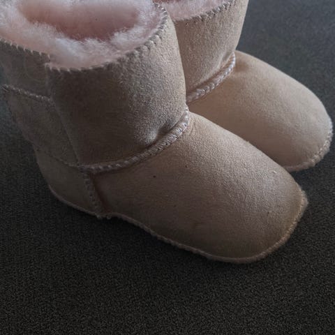 Nye flotte gode varme saueskinnstøfler selges billig. Str 24/25. God kvalitet. Litt rosaaktig farge.