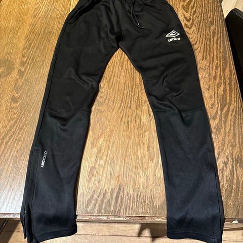 Umbro treningsbukse for fotball i unisex-størrelse XS. Buksen er svart og laget i et lett, teknisk materiale som egner seg til fotballtrening og annen fysisk aktivitet. Den har strikk i livet og glidelås nederst på beina for enklere av- og påkledning over sko. Passer til både trening og oppvarming på fotballbane eller annen idrettsaktivitet. Glidelås i lommene