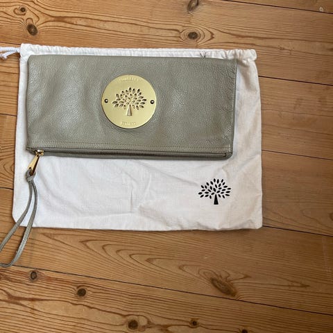 Original Mulberry Daria clutch i skinn. Klassisk og elegant modell med gullfarget logo, glidelås og håndstropp.