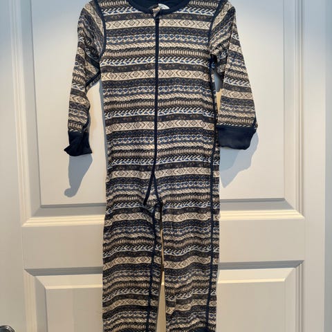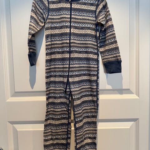 Hel dress med lange ermer og ben, samt knappelukking foran. Egnet som nattøy eller som innerste lag på kjølige dager.
