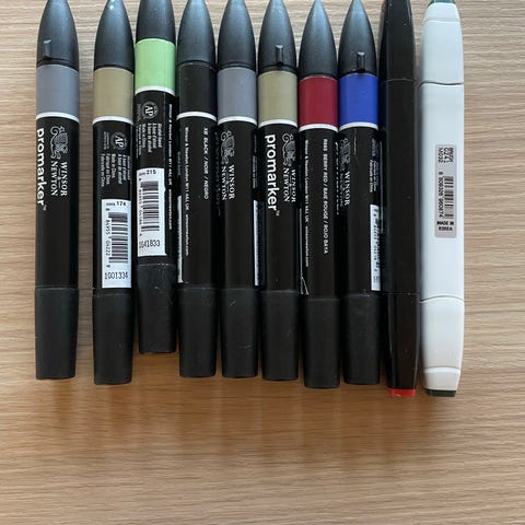 Posca tusjer i forskjellige størrelser og farger selges. De har vært lite brukt, men alle fungerer normalt.
