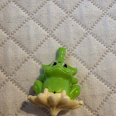 Grønn blekksprut figur i hard plast. Figuren har flere tentakler og et belte i grå og blå farge rundt «kroppen». På baksiden er det et lite batterilokk og en bryter, noe som tyder på at figuren kan ha hatt lys eller lydfunksjon. Produsert i Kina, merket med «MFG. FOR BKC». Egner seg som leke, samlefigur eller pynt. Ingen løse deler synlig på bildene, men små barn bør bruke figuren under tilsyn på grunn av hard plast og eventuelle smådeler fra mekanismen.Denne figuren er Kang, en av de to enøyde romvesenene fra de årlige "Treehouse of Horror"-episodene i The Simpsons.