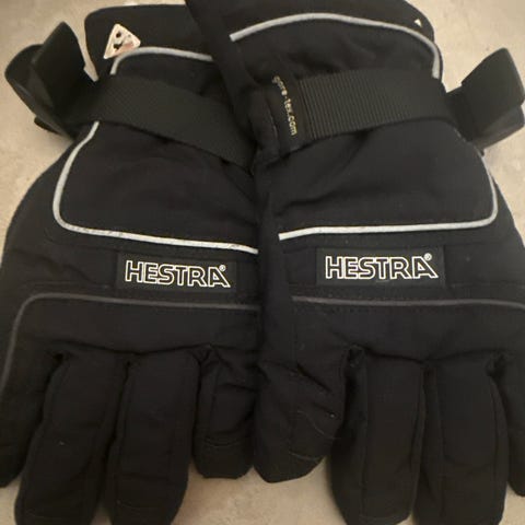 Nordica skihansker i svart skinn. Hanskene har polstrede fingerledd og håndbak for ekstra beskyttelse, samt forsterkninger i håndflate og på fingre. Justerbar lukking ved håndleddet gir bedre passform. Innsiden har tekstilfôr merket «Tech Textile Abrasion Resistant Fabric». Egner seg til bruk i skibakken og andre vinteraktiviteter der det er behov for varme og slitesterke hansker.