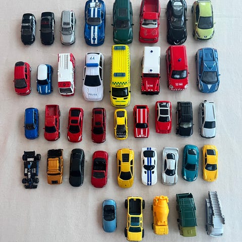 Kategori: Dette er en type rimeligere lekebil som ble solgt i store mengder, ofte i sett med flere biler, på 80- og 90-tallet.