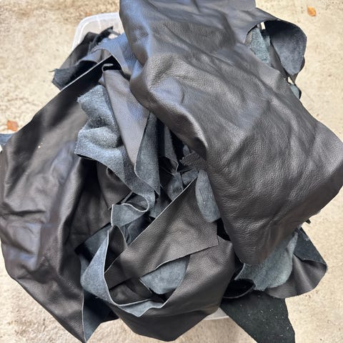 Store og fine stykker av farget skinn. Det er et fint og fleksibelt materiale å jobbe med og kan brukes til mye. Tiden strekker ikke til hos meg, så jeg håper noen andre kan bruke det til et kult prosjekt.