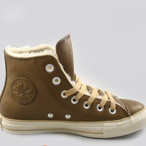 Converse All Star brune semskede høye sko med fôr, unisex, størrelse 33. Noen striper på tuppene men ellers i god stand og er klare for mye mer bruk.