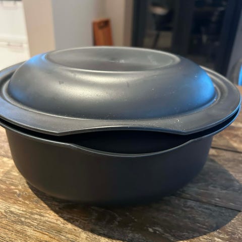 Sett med svart støpejern bestående av en stekepanne og en gryte med lokk. Stekepannen har helletuter på begge sider og langt håndtak. Gryten har to sidehåndtak og tilhørende lokk med knotter på innsiden for jevn fuktfordeling under tilberedning. Egnet til matlaging på komfyr og i ovn, avhengig av type varmekilde og produsentens anbefalinger. Fungerer fint å induksjon.