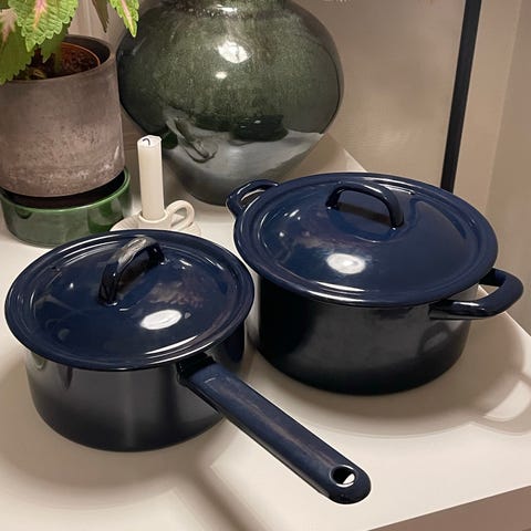 Stekepanne og gryte med lokk støpejern svart