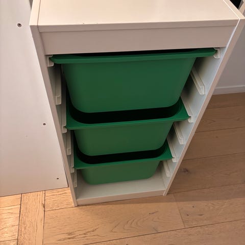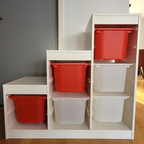 IKEA Trofast oppbevaringsstativ med kasser hvit rød
