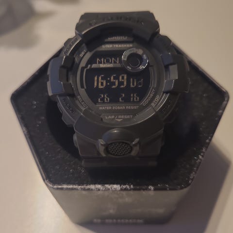 Casio G-Shock Ga-110gb herreklokke med digitalt og analogt display. Klokken har svart urkasse og rem, med gullfargede detaljer i urskiven. G-Shock-serien er kjent for støtsikker konstruksjon og robust design. Leveres i original G-Shock-boks som vist på bildene. Klokken passer til daglig bruk og aktiviteter der man ønsker en solid og funksjonell herreklokke.