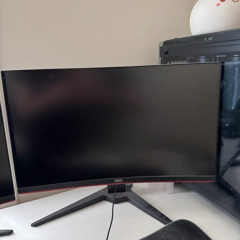 Curved gaming monitor fra AOC i god stand uten synlige skraper eller riper, strømkabel medfølger. Kostet 2500kr ved kjøp så legger den ut for litt under halv pris, ekstra hundrings av prisen hvis du kan hente personlig på 1454 Fagerstrand.