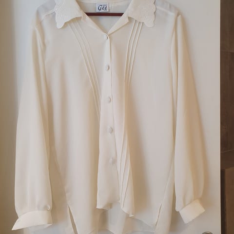 Nydelig hvit vintage bluse. Fineste tynne blonde kragen. Str 38.