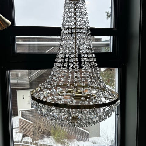 Selger denne pent brukte taklampen fra svenske Markslöjd. Den er 38 cm og er av messing og glass.
