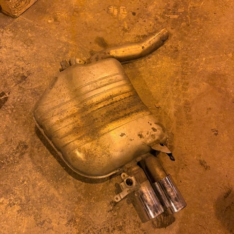 Bilde 1-4: Bakre eksospotter til subaru Legacy 07. 2.0 liter bensin. EJ20 motor. POLMO 46.21 og Polmo 46.20. Trenger en vask men bra stand.