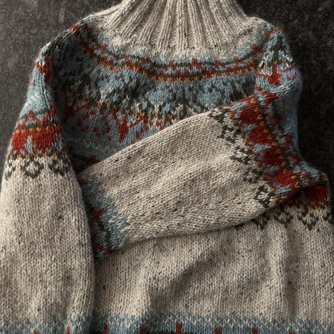 Ny kjempefin håndstrikka villmarksgenser i str L selges