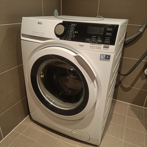 I morgen får vi ny vaskemaskin og tørketrommel, derfor selger vi vår vask/tørk-maskin videre.